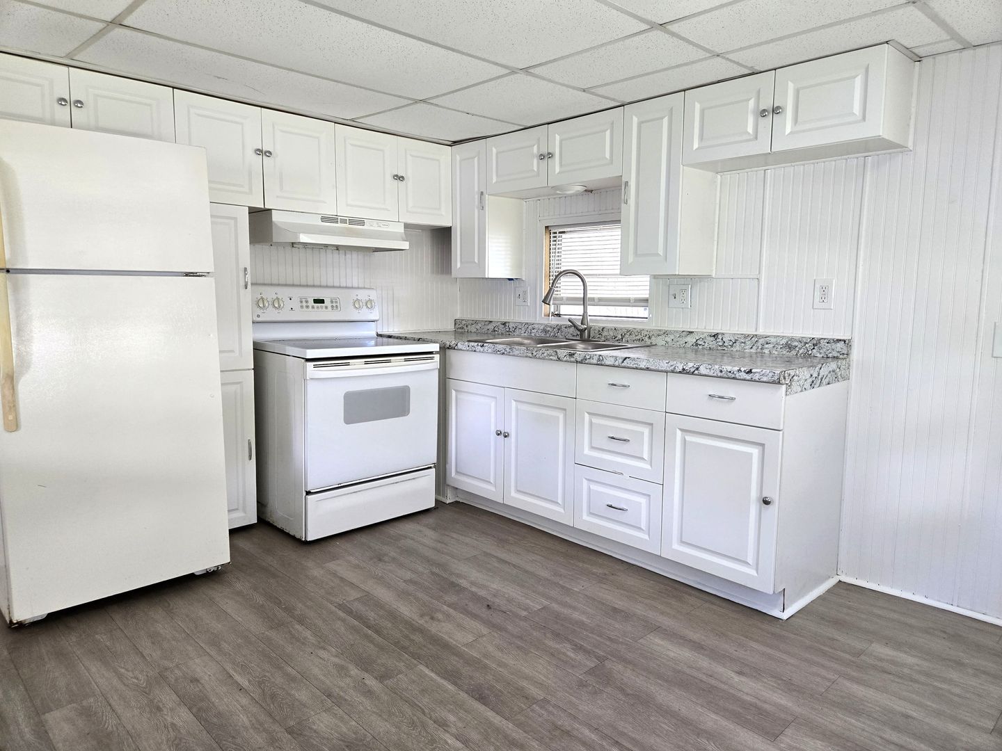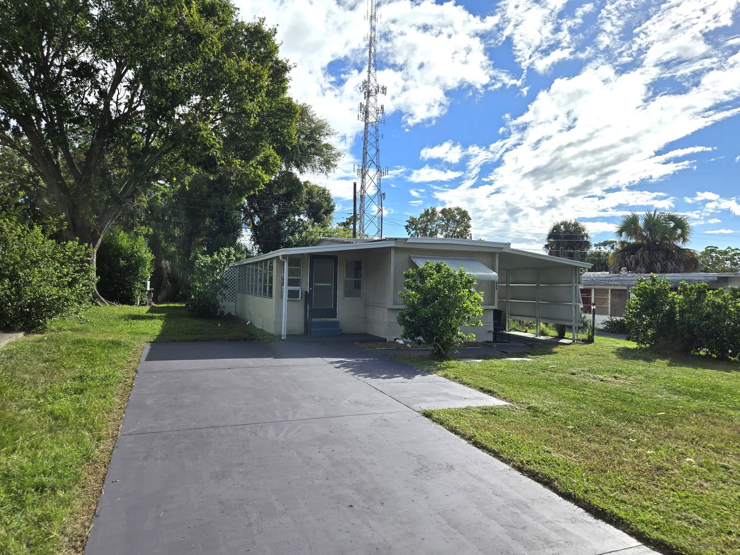 Nice Port Richey home with large front porch/Florida room! Fresh paint throughout, new blinds, durable wood-look vinyl plank flooring, white cabinets and appliances. Covered back porch includes a shed with washer/dryer hook-ups. Central AC and ceiling fans!