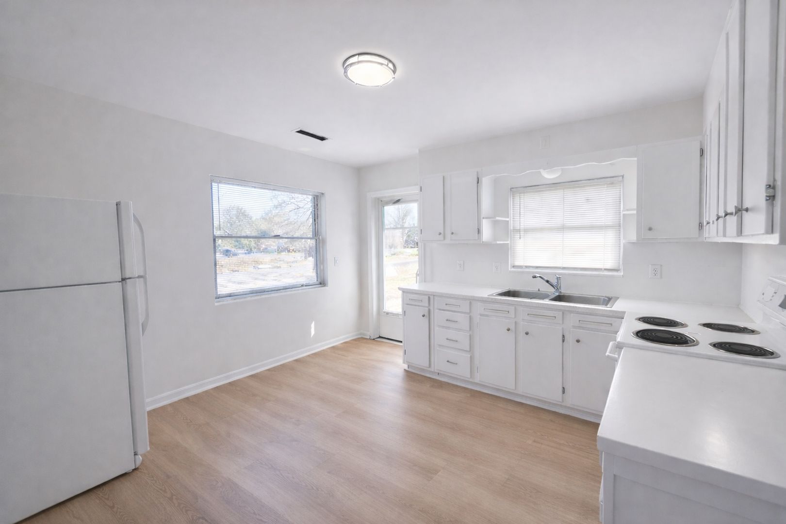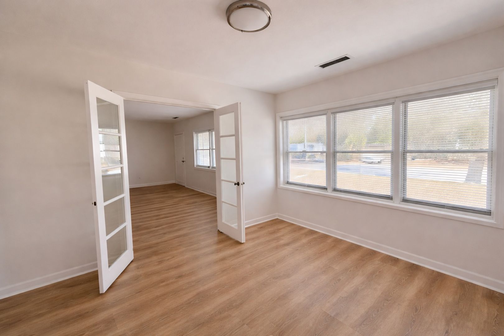 Charming 1-bedroom, 1-bath home with a versatile bonus room—ideal for a home office, dining space, or flex area to suit your needs. Adorable French doors add character and warmth, creating an inviting touch that enhances the home’s cozy feel. Light and bright throughout, this Clearwater residence features brand-new luxury vinyl plank flooring and fresh paint, offering a crisp, move-in-ready atmosphere.