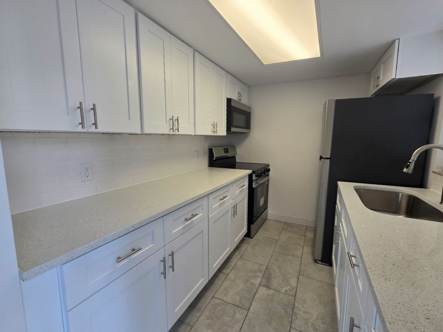 2 bed/1bath unit, just updated! New tile floors, fresh paint, new appliances (stainless oven, fridge and microwave), quartz counter tops.