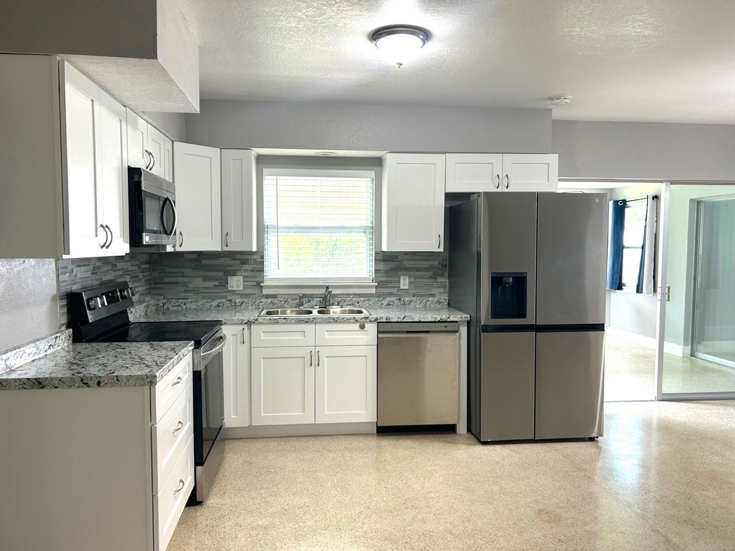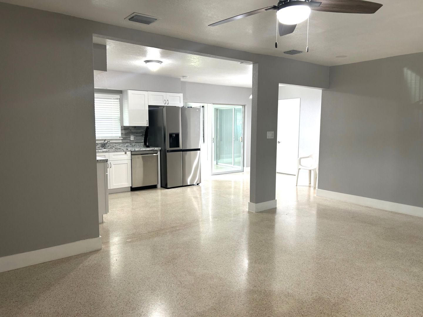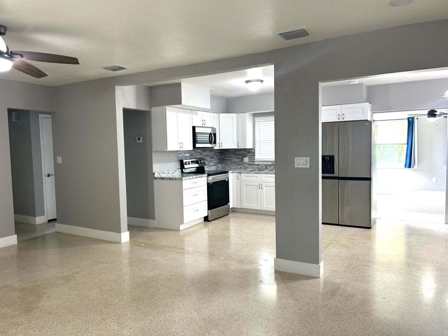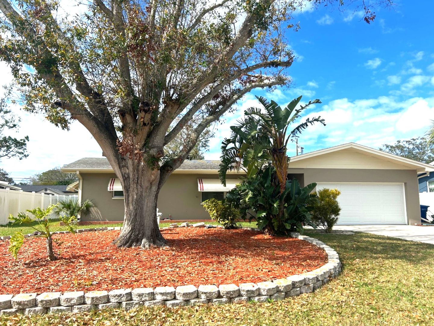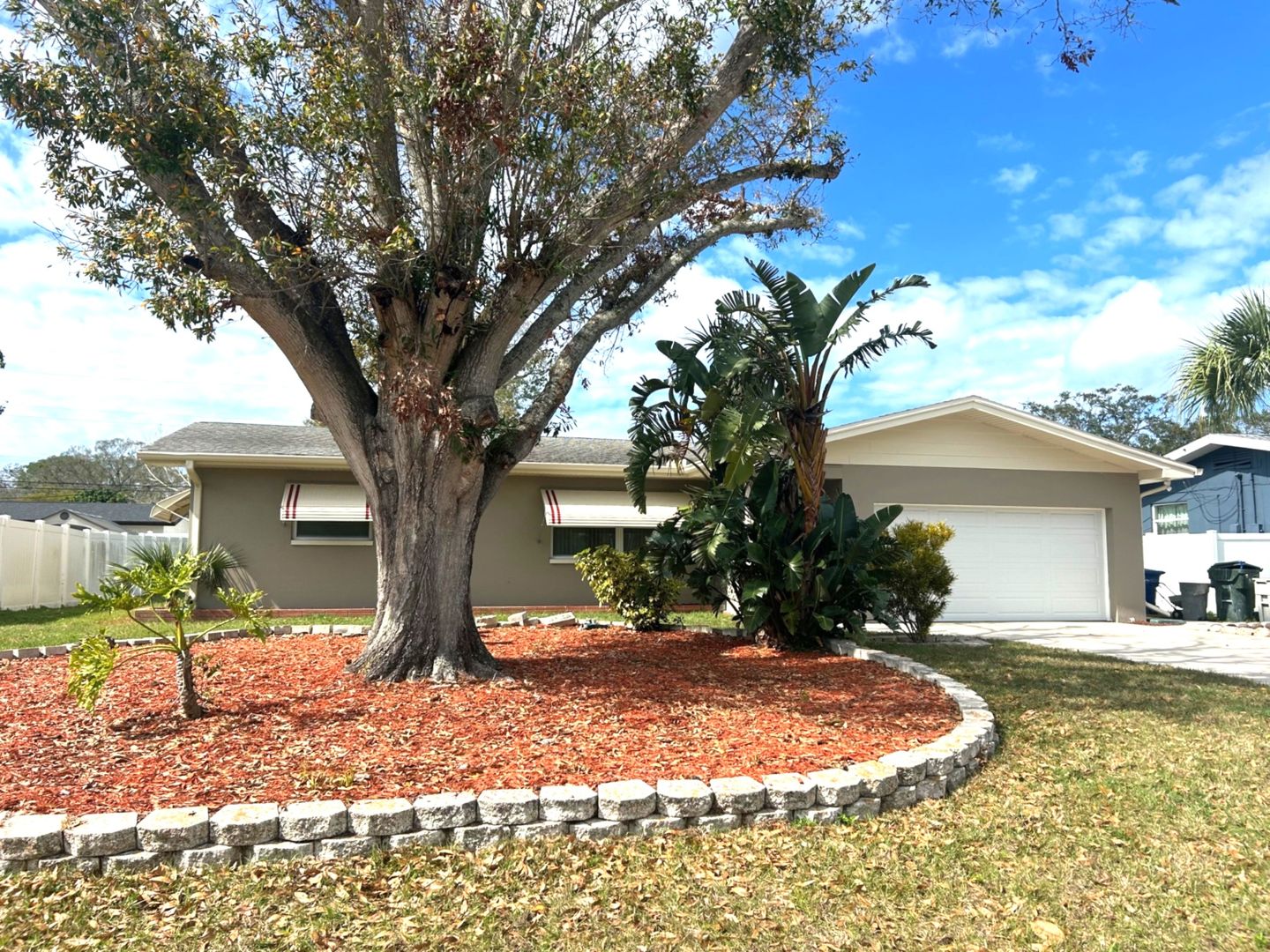 Nicely remodeled clearwater home! Desirable split floorplan with open kitchen, 3 bedrooms, 2 baths plus a bonus room. The beautiful kitchen features white cabinetry and all-new stainless appliances. There's a newer Central AC, to provide efficient cooling for the home. The house has neutral paint colors inside and out and polished terrazzo flooring. Both bathrooms have been updated. Residents will enjoy this large 2-car garage with 2 openers. The garage is spacious and includes a washer, dryer and laundry sink. Bonus room has sliding doors to separate it from the main living space and looks out over the nicely sized private hard.