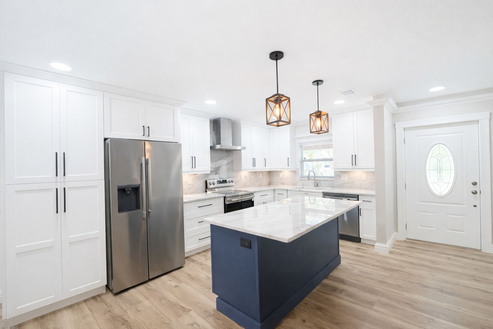 With an open and inviting layout, this home is perfect for everyday living and easy entertaining. The kitchen was remodeled in 2024 and features a farmhouse sink, center island, trash pull-out, pot drawers, mixer lift, and a stylish range hood vented to the exterior. All appliances are brand new in 2026 and have never been used.