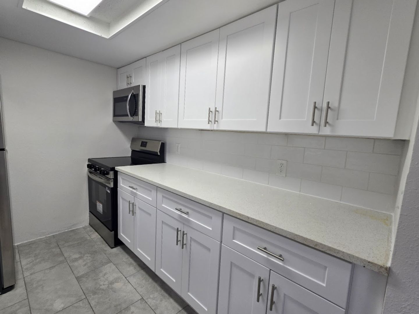2 bed/1bath unit, just updated! New tile floors, fresh paint, new appliances (stainless oven, fridge and dishwasher), quartz counter tops.