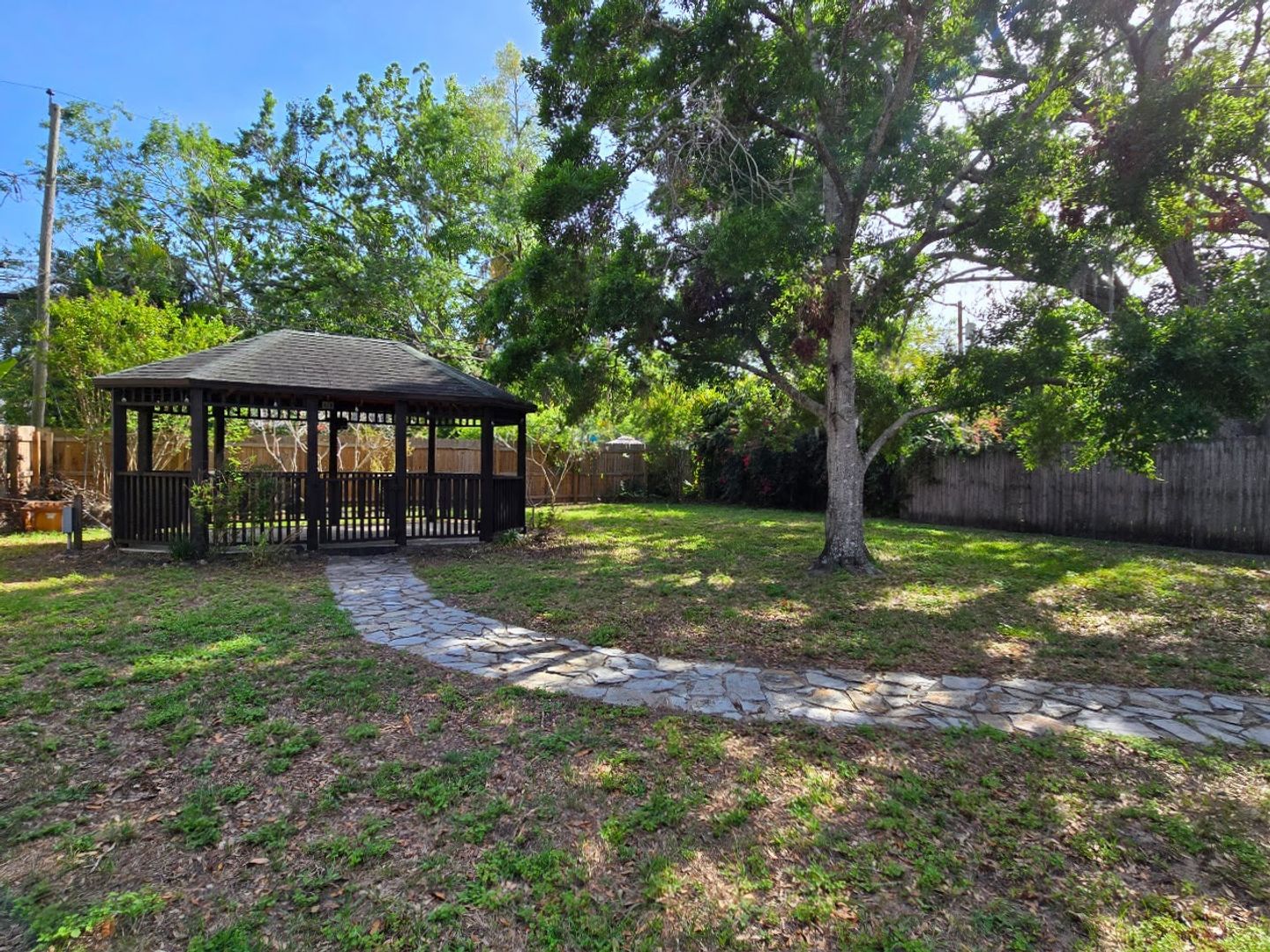 The primary suite is on the upper level and features new hardwood floors, a new deck, and a large bonus room that could be a second living area or office. This large bedroom features a walk-in closet and en-suite bathroom. The backyard is a gardener's and entertainer's delight. This parklike setting is fully fenced, with a large gazebo perfect for gatherings, pets, or relaxing. This amazing home is within walking distance to the Downtown area of Dunedin, with all the festivals, restaurants, and shops. It is also close to the Pinellas Trail and the Dunedin Marina.