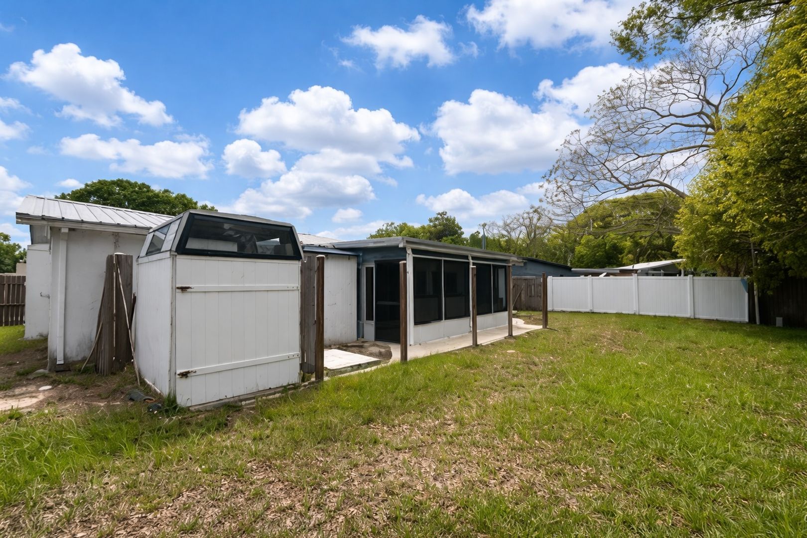 Highlights include a 1-car garage, storage shed, and a fully fenced yard, providing both functionality and privacy.