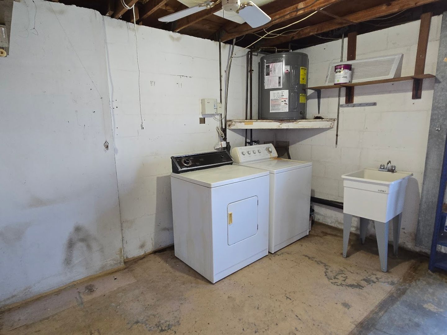 The home has a newer central AC system, a bright kitchen including a dishwasher, and a washer/dryer (conveyed as is) and a garage door with remote opener!